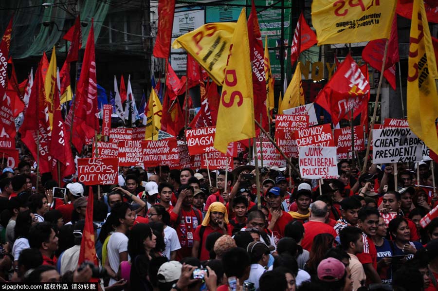 当地时间2015年5月1日,菲律宾马尼拉,菲律宾民众游行纪念五一国际劳动节。(图片来源:sipa)