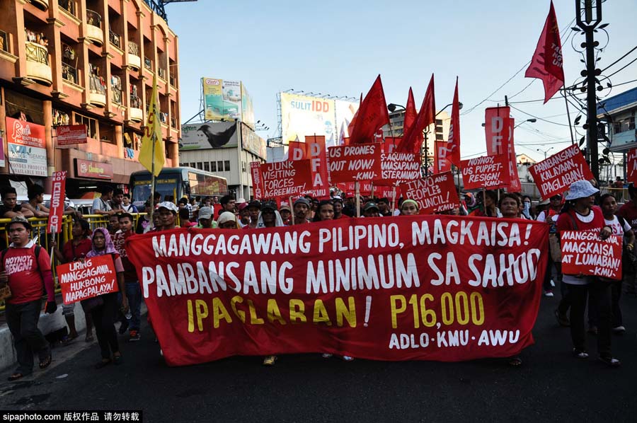 当地时间2015年5月1日,菲律宾马尼拉,菲律宾民众游行纪念五一国际劳动节。(图片来源:sipa)