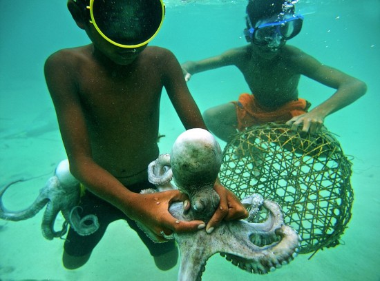 这里的孩子从4岁起就开始撑起小船在海里捕捞鱼类、章鱼和龙虾等。