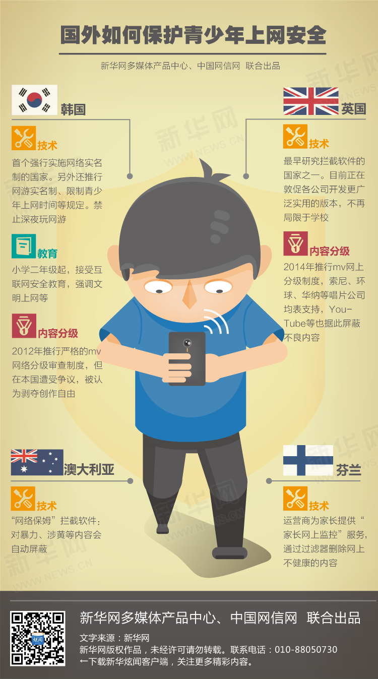 互联网的高速发展为青少年的成长提供了无限的可能性,可与此同时,随之而来的各种问题也令互联网时代对青少年的保护迫在眉睫。法国部分学校推出了“上网执照”,主要通过课程等方式教学生应对网上陌生人的骚扰;引导学生文明上网。