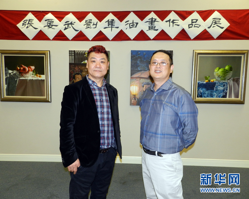 为期3天的著名旅美画家张要武、刘隼油画作品展“唯美与空间”5月1日晚在休斯敦中国城的中国艺术中心开展,展出了两位画家近年精心创作的50多幅作品,吸引了包括中国驻休斯敦总领事李强民、文化参展杨松及休斯敦当地约100名人士前来观赏。张要武超写实主义风格的静物作品,细腻生动,极尽刻画,光影灿烂,令人惊叹。其中油画《秦俑》和《放在桌子上的橘子》分别荣获“”全美综合艺术美展“油画类一等奖。而刘隼的作品具有强烈的新象征主义色彩与超现实主义风格,融合了东方哲学思想与西方的绘画技巧,让人充满想象。两位画家风格迥异但表现内容丰富的油画作品令观众赞不绝口。