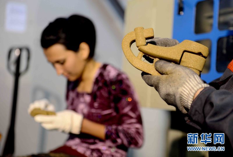 4月18日,在乌兹别克斯坦吉扎克工业特区锡尔河分区的鹏盛工业园区,工人在AWP合资有限公司的洁具生产车间工作。新华社记者沙达提摄