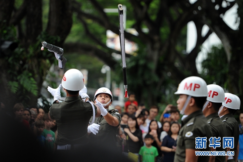 新加坡总统府举行宪兵换岗仪式及操枪表演