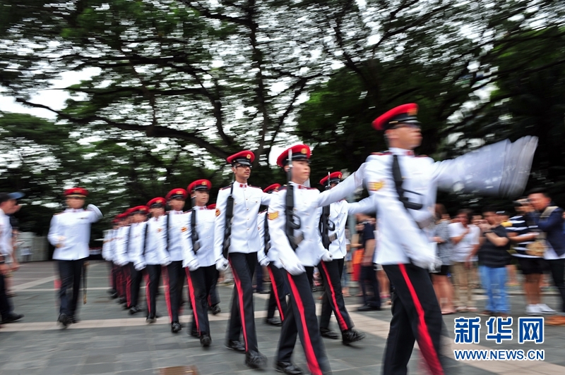 新加坡总统府举行宪兵换岗仪式及操枪表演