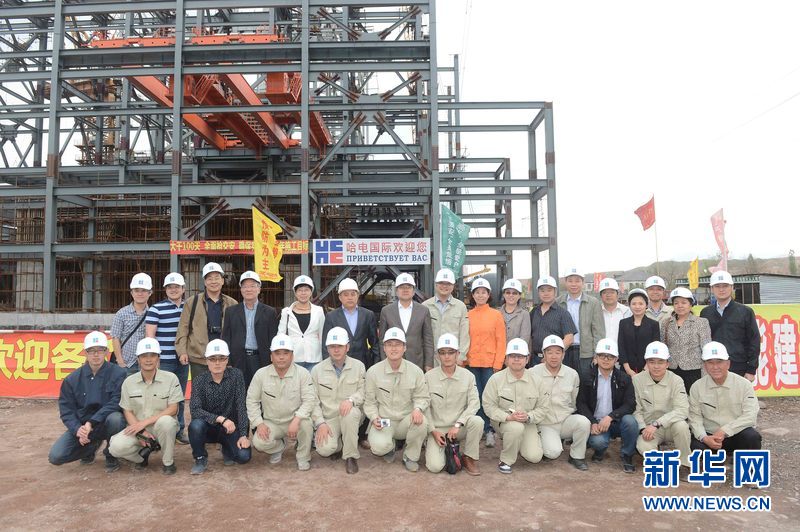 5月1日,中国驻乌兹别克斯坦大使孙立杰在哈尔滨电气国际工程公司承建的安格连热电厂改造项目现场。沙达提 摄