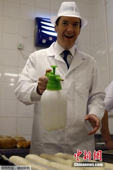 当地时间5月6日,英国财政大臣乔治·奥斯本造访英国,莫里森超市的面包点,亲自动手做面包,为大选造势。