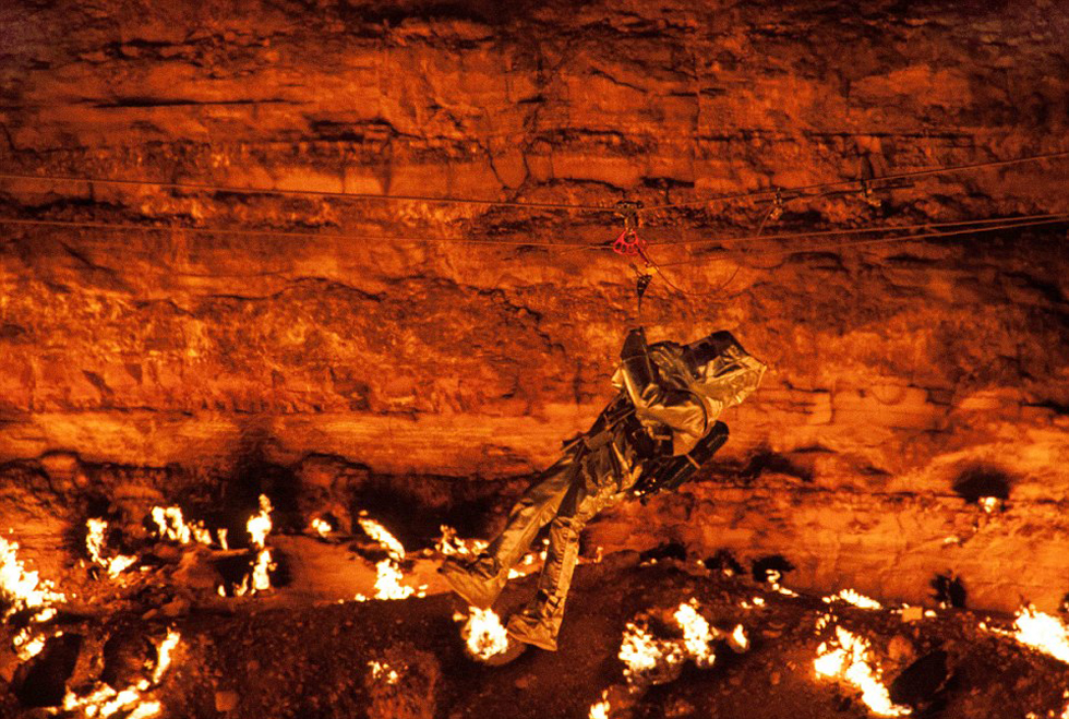 最近公布的照片显示,康罗尼斯使用绳索下降到30多米的坑底,那里的温度高达1000摄氏度。康罗尼斯甚至还在坑内行走。他身穿耐热铝制防护服、头戴呼吸装置,在火焰坑中停留了15分钟。