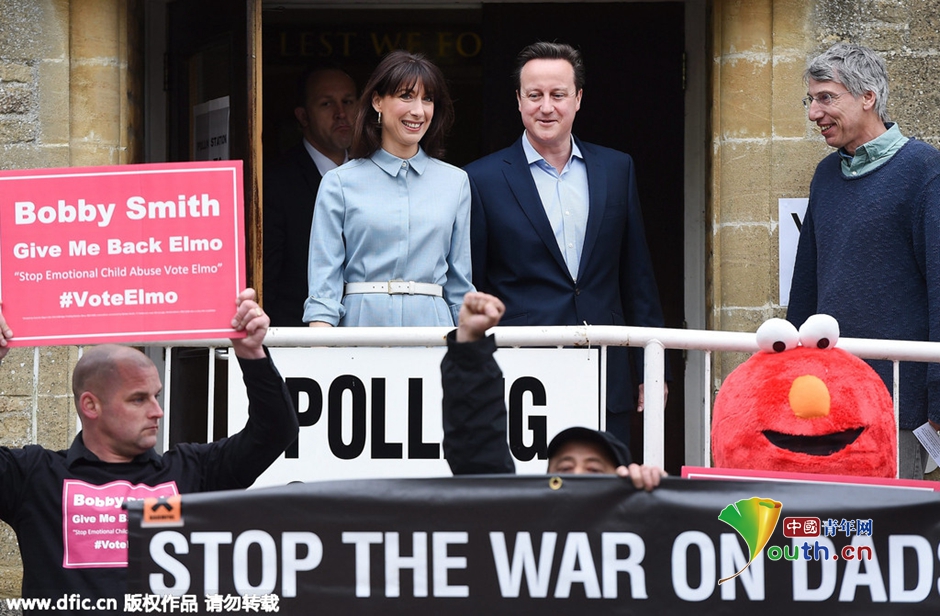 当地时间2015年5月7日,英国牛津郡,英国首相卡梅伦与夫人前往投票站参加投票。