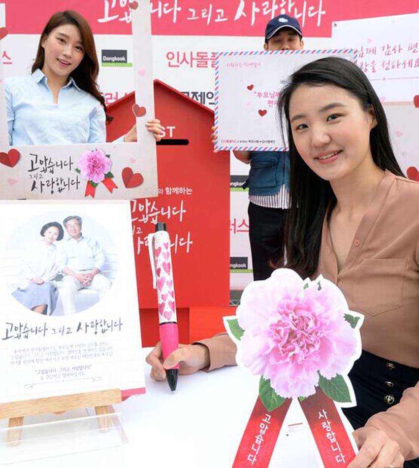 据悉,“双亲节”前一天5月7日上午,在首尔清溪川广场还举办了“亲手给父母写封感谢信”的活动,免费将感谢信送到家。