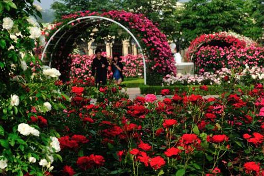 韩国“玫瑰花庆典”开幕 游客感受花海浪漫(组图)