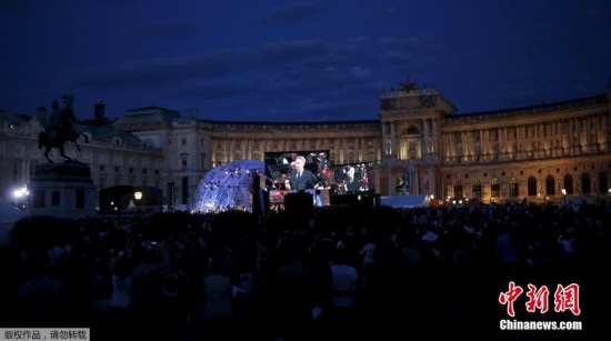 当地时间2015年5月8日,奥地利维也纳,上万民众聚集英雄广场参加官方举办的二战胜利70周年庆祝活动。