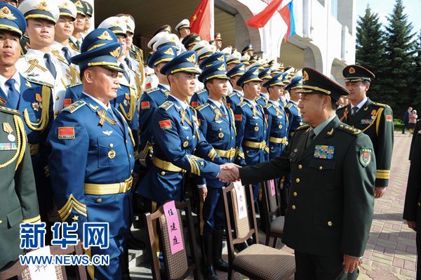 5月9日,在俄罗斯首都莫斯科,中共中央政治局委员、中央军委副主席范长龙看望中国人民解放军三军仪仗队官兵。受习近平主席委托,中共中央政治局委员、中央军委副主席范长龙9日下午来到参加俄罗斯纪念卫国战争胜利70周年庆典的我军阅兵方队驻地看望官兵,代表习主席和中央军委向方队官兵圆满完成参阅任务表示祝贺,勉励他们认真总结经验,牢记强军目标,献身强军实践,为党和人民再立新功。新华社记者 戴天放 摄