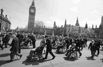 ▲5月10日,在英国伦敦,老兵参加纪念日游行活动。当日,伦敦举行游行活动纪念二战胜利70周年。 新华社/路透