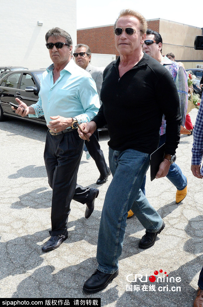 施瓦辛格结伴史泰龙共用午餐 开吉普抽雪茄烟显硬汉本性
