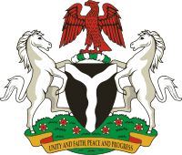 国徽底部是在尼日利亚非常常见的一种花朵和草地。一条写着“团结与忠诚、和平与发展”的黄色丝带穿越底部,让国徽中的各部分成为了一个整体。