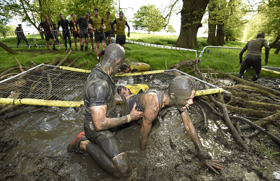 英国年度越野障碍物赛上周末拉开帷幕,挑战者在激烈竞争。(网页截图)