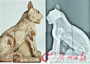 X光扫描显示,真正的动物木乃伊内有动物遗骸。