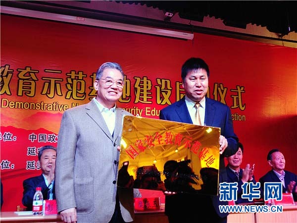 新华网延安5月12日电(记者 郝斐然)中国政策科学研究会国家安全政策委员会12日在陕西省延安市为延安中学“国家安全教育示范基地”授牌。第十一届全国政协副主席、中国政策科学研究会国家安全政策委员会名誉会长李金华为延安中学颁发“国家安全教育示范基地”牌匾。