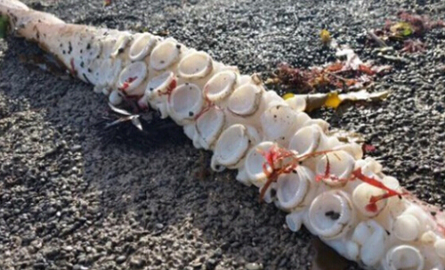 最先发现这只鱿鱼的是早起的遛狗者Bruce Bennett,他说他经常在那里遛狗,周二还没发现有什么东西,周三早上8点半左右发现了那只大怪物,应该是周二晚间被冲上岸边的。