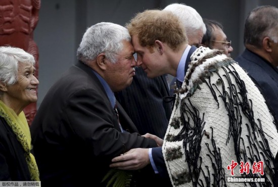 英国哈里王子访问新西兰 与毛利人行碰鼻礼