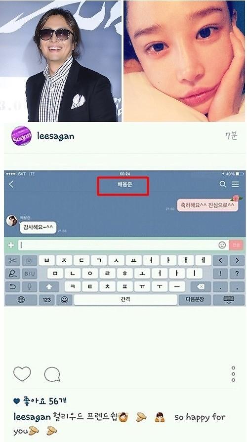 李思江将发布了该聊天对话截图,称此为“好莱坞级友情”,证明与裴勇俊分手后仍保持着联系。一时间,“好莱坞级友情”也成为热议话题。另外,她还留言道“So happy for you”。