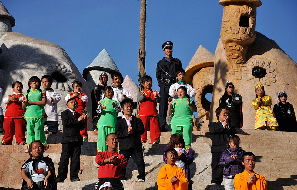 这个矮人城位于中国云南省昆明市,是曾生活在山区的侏儒于2009年建立的,所有居民身高均不超过1.3米。这些人将他们的住宅改造成主题公园,建造蘑菇型房屋,穿童话服装,以吸引更多游客。矮人城的发言人称:“由于身材矮小,我们常被人利用。但是这里再也没有那种情况,我们所做的一切都是为了自己。”