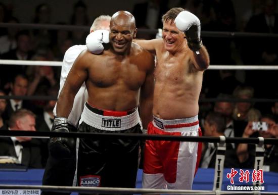 美国媒体形容,比赛更像是“挠痒痒”,而不是拳击比赛。虽然52岁的霍利菲尔德表现大度,让了68岁的罗姆尼几拳,罗姆尼还是在第二个回合就认输了。