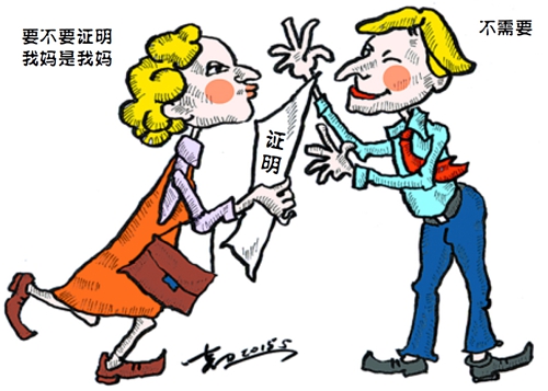 5月6日的国务院常务会议上,李克强总理说:“一个公民要出国旅游,需要填写紧急联系人,他写了他母亲的名字,结果有关部门要求他提供材料,证明“你妈是你妈”。”总理的话音刚落,会场顿时笑声一片。“这怎么证明呢?简直是天大的笑话!”