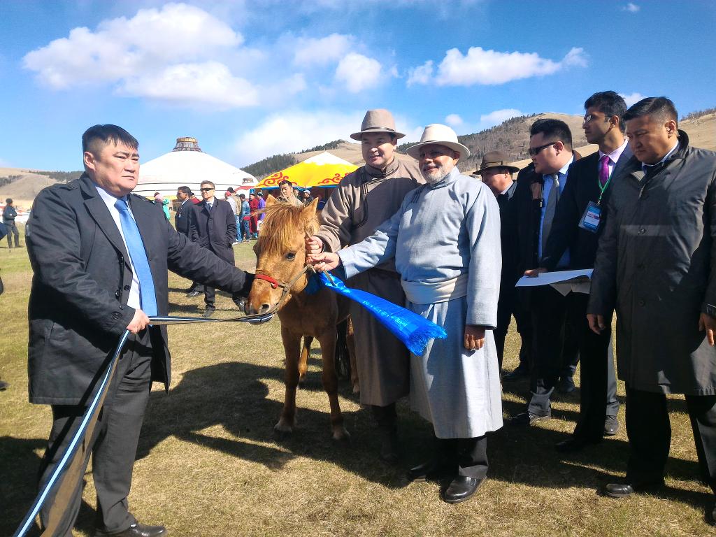 莫迪在访问期间,换上蒙古国传统服饰蒙古袍,出席那达慕大会。