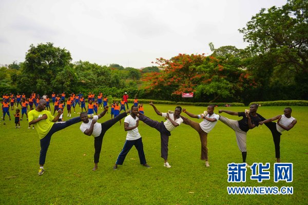 约翰·丘库和同好们展示武功(记者杨旸 摄)