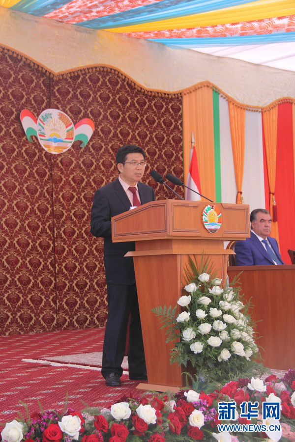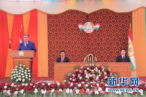 拉赫蒙总统讲话 (新华社记者 王峰 摄)