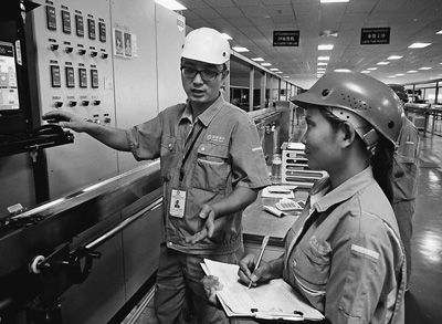 通信光缆企业富通集团2010年在泰国启动了东南亚运营总部和制造基地的建设。图为中方技术人员正在培训泰国当地员工。记者 俞懿春摄
