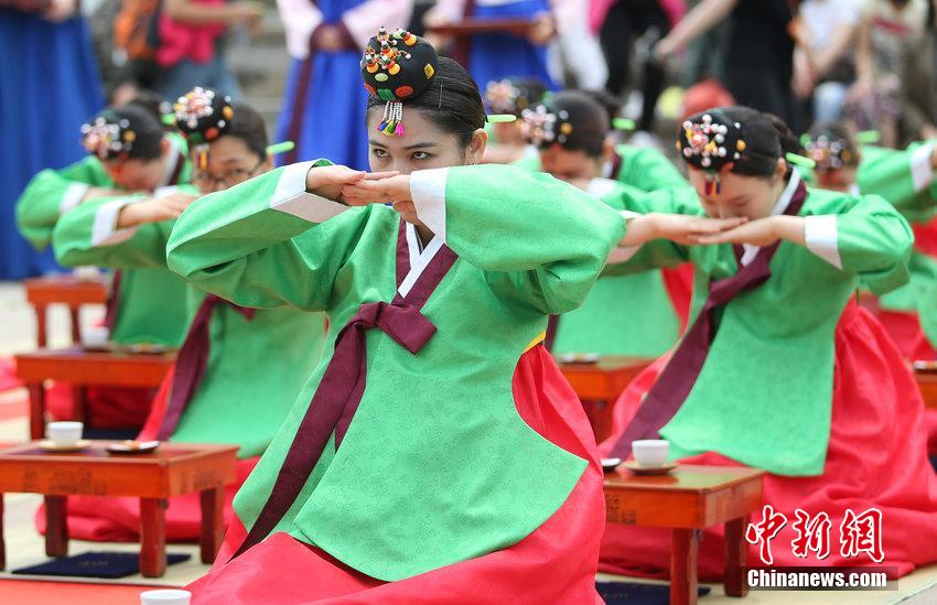 当地时间2015年5月18日,韩国首尔,“成年日”第二天,青年女子在南山韩屋村参加传统成人礼。图片来源:CFP视觉中国