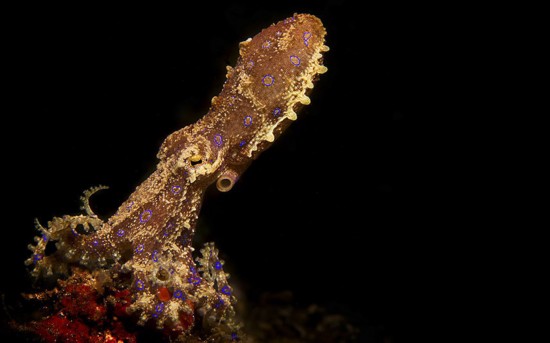 印度尼西亚蓝碧海峡的蓝环大章鱼。