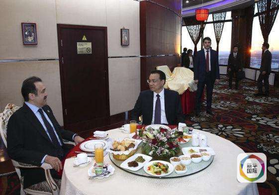 (克强总理与马西莫夫总理在阿斯塔纳北京大厦共进早餐)