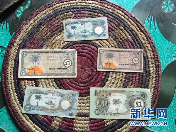 比夫拉共和国时期的通行货币(记者杨旸 摄)