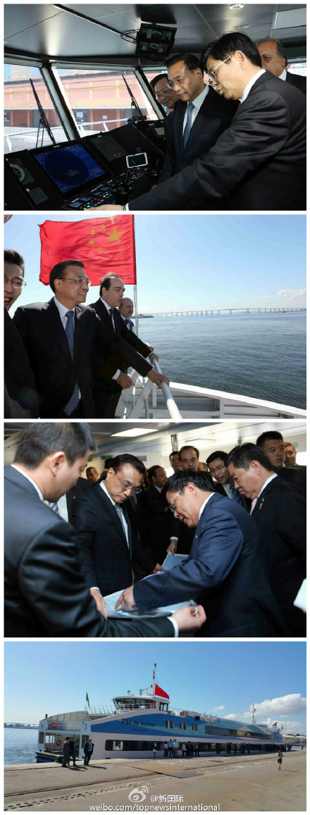 新华网北京5月21日电 据新华社“新国际”微博报道,当地时间20日,李克强在巴西里约登上中国产“面包山”号渡轮,巡航瓜纳巴拉湾。该船日常往返于尼泰罗伊市和里约市之间,因其安全、舒适、静音等优良性能,深受乘客青睐。总理先后察看各舱室功能,体验座椅是否舒适。他告诫中方建造者,质量是企业的金名片。