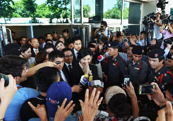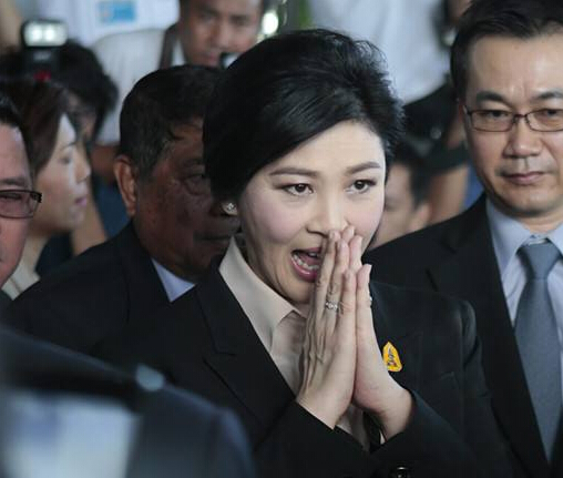 5月19日,泰国前总理英拉在泰国最高法院接受大米收购渎职案审理