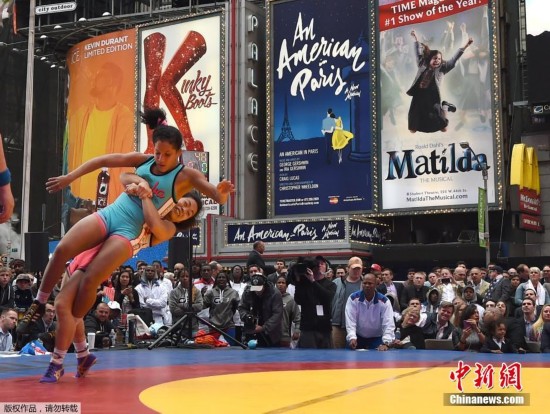 纽约时代广场变身摔跤场 美古大战众人围观(组图)