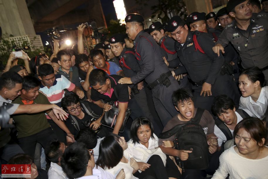 当地时间2015年5月22日,泰国曼谷,反军变人员参加集会纪念军变一周年,数十人遭拘捕。