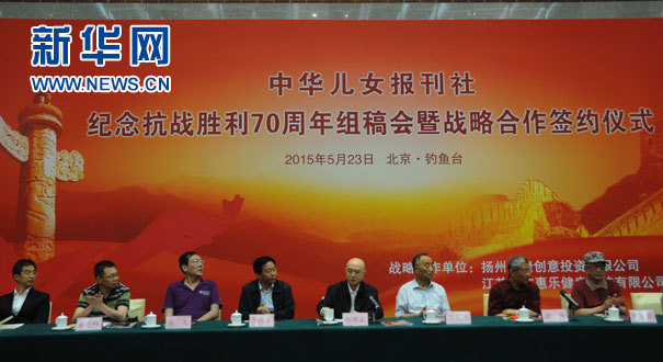 新华网北京5月23日电(记者 毕秋兰)中华儿女报刊社纪念抗战胜利70周年组稿会,23日在北京钓鱼台国宾馆举行。抗战历史专家、抗战名将后裔、青联委员代表等齐聚一堂,为中华儿女报刊社做好纪念抗战胜利70周年宣传报道建言献策。