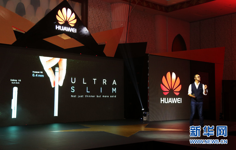 华为在中东发布最新的旗舰智能手机P8。新华社记者李震摄