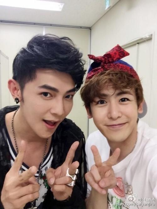 国际在线专稿:据韩国《亚洲经济》报道,2PM组合成员尼坤与台湾飞轮海成员汪东城晒合影,大炫跨越国境的友谊。