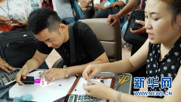 尖竹汶宝石市场里,数千万泰铢的宝石贸易额就这样在几张简简单单的桌椅上展开。(记者李颖摄)