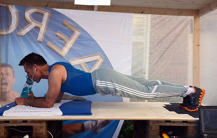 丹麦健身教练霍尔再次刷新了“平板支撑”时间最长世界纪录(网页截图)