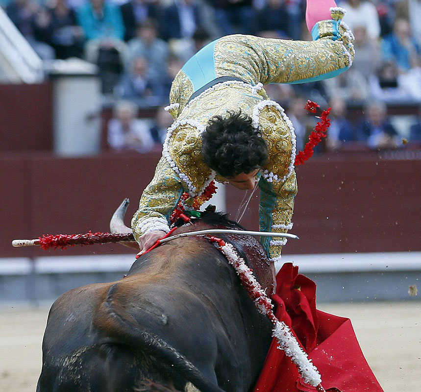 法国女斗牛士坠马险被顶死 胜利后割下牛耳以示庆祝 (组图)