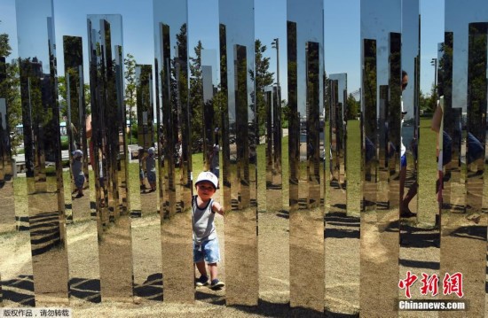 当地时间2015年5月26日,美国纽约,荷兰艺术家Jeppe Hein打造的镜子迷宫艺术品。公共艺术基金会在当地推出一个名为“请触摸艺术”的展览,展出18项互动艺术品,其中包括社交长椅,室内喷水池,以及镜子迷宫等。