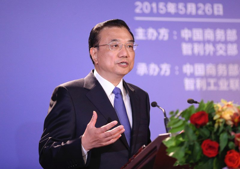 当地时间5月26日上午,国务院总理李克强在圣地亚哥下榻饭店与智利总统巴切莱特共同出席中智建交45周年经贸研讨会暨中智企业家委员会第七次会议开幕式并分别致辞。(图/中国政府网)