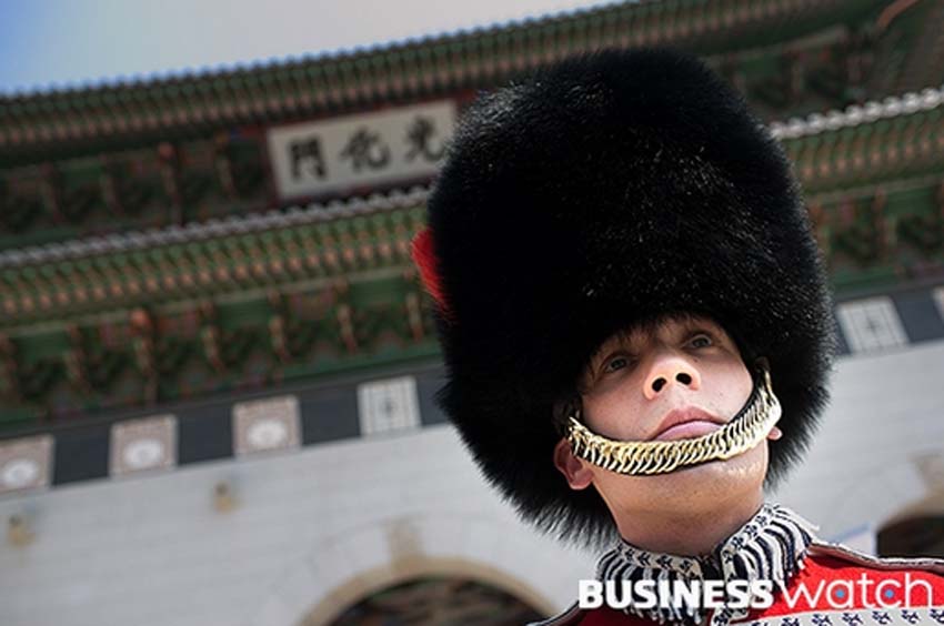 英国皇家卫队在韩国故宫“站岗” 游客争相合影(组图)