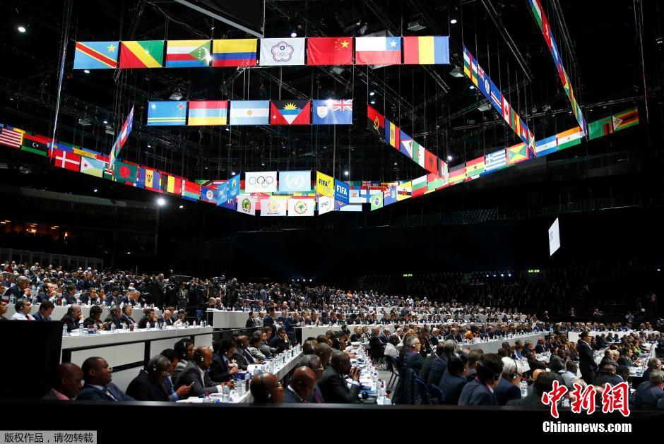 当地时间5月29日,第65届国际足联大会在苏黎世举行。现任国际足联主席布拉特出席并发表讲话,现场一位示威者举旗闹场,被保安及时控制。